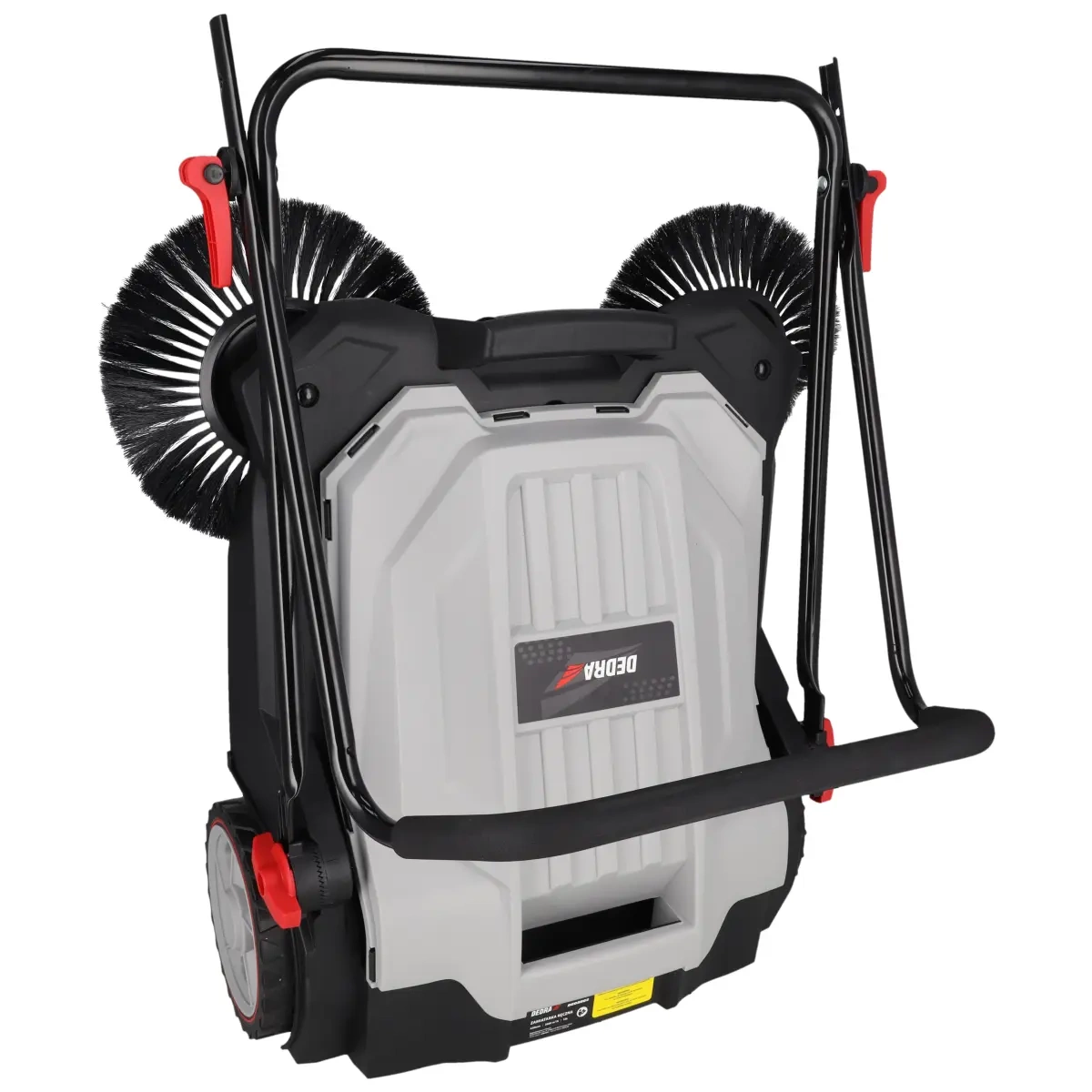 Ručni čistač izvrstan je alat za sve koji imaju velike prilaze ili pločnike u vrtu. Čistač se također može koristiti unutar prostorija kao što su garaže, skloništa ili skladišta. Zahvaljujući dvjema četkama, čistač istovremeno pokriva traku širine 650 mm, što osigurava brz i precizan rad koji se ne može postići običnom četkom ili metlom. Ručni čistač DEDRA DED8802 izvrsna je alternativa puhačima za lišće ili usisavačima. Čistač ima ručni mehanizam, tj. rotacija četki se stvara tijekom kretanja prema naprijed, što osigurava tihi rad. Meka završna obrada ručke osigurava visoku udobnost čak i tijekom dugotrajne uporabe. Podešavanje kuta upravljača omogućuje prilagođavanje položaja ručke proporcijama našeg tijela, što se odražava na bolju ergonomiju uređaja, veću udobnost i eliminaciju bolova u mišićima koji mogu nastati pri radu u prisilnom položaju. Sklopiva ručka čini spremanje ili transport čistača jednostavnim i štedi prostor. Čistač ima ugrađen spremnik od 18L koji osigurava dug rad bez potrebe za uklanjanjem plena. Ručni čistač DED8802 ima 4 kotača. Stražnji promjera 200 mm osiguravaju stabilnost i sigurnost u vožnji, a manji promjera 50 mm povećavaju manevarske sposobnosti. Čistač ima 3 četke - 2 bočne četke za pometanje otpada u spremnik i stražnju za uklanjanje zaobiđenih čestica. Radna širina od 650 mm omogućuje vam pometanje do 2600 m2 / h, što je izvrstan rezultat, pogotovo jer je pometenje praktički bez napora.