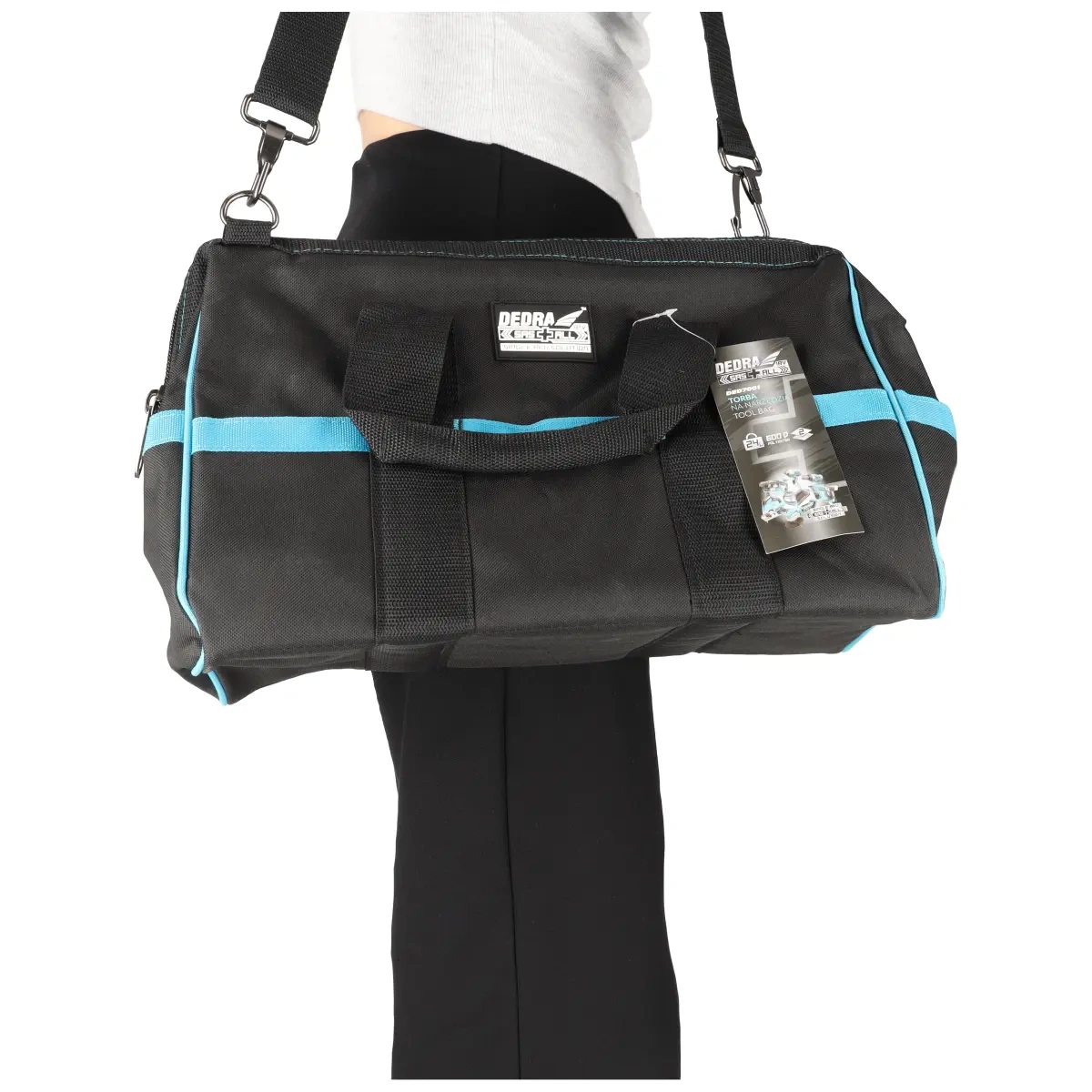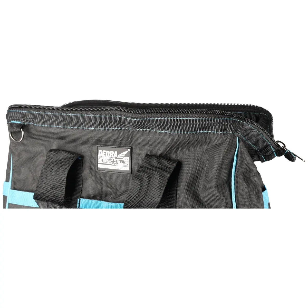 Vrecko s objemom 24 litrov. Taška je vyrobená z odolného, nešpinivého dvojvrstvového polyesteru 600D, vďaka ktorému je výrobok odolný voči mechanickému poškodeniu, alezároveň chráni náradie počas prepravy. Taškas a z a p í n a n a zips a má nastaviteľný popruh na nosenie.