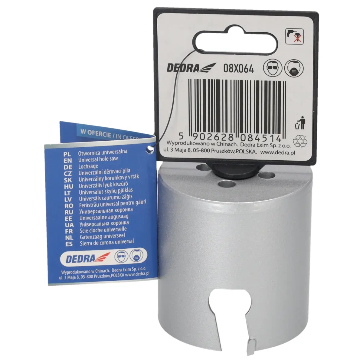 Skutočná veľkosť je uvedená v popise produktu. Univerzálna píla na diery je nepostrádateľným nástrojom v dielni pre domácich majstrov. Špeciálna konštrukciareznej hrany zvyšuje pevnosť píly a zlepšuje vedenie diery. S použitím skľučovadiel HEX 10 mm 1 /2" 08X001 (odporúčané pre otvory: 08X019-08X030) a 5/8" skľučovadiel 08X002 (odporúčané pre otvory: 08X032-08X152) je možné používať píly na diery na vŕtačkách alebo vŕtačkách.Pomocou skľučovadla SDS+ 08X003 (odporúčanépre otvory: 08X 032 - 08X152) je možné používať pílu na otvory DEDRA 08 X widespread s príklepovou vŕtačkou v režime bez príklepu. Na zlepšenie rezného účinku a zvýšenie pevnosti majú otvory niekoľkovidlicových vložiek, ktoré účinne obrábajú materiál. Univerzálne pilotné vrtáky DEDRA 08 X možno s použitím vhodného pilotného vrtáka použiť na prácu v dreve, kovoch, nábytkových doskách, PVC, minerálnych materiáloch, ako sú keramické obkladačky, pórobetón a silikáty.Na zvýšenie pevnosti otvorov je jadro vyrobené z vysokokvalitnej ocele HCS č. 45 s hrúbkou 1,5 mm a zuby sú vyrobené z karbidu volfrámu so 6 % kobaltu (volfrámová oceľ YG 6X). Tým sa zlepšuje kvalita a trvanlivosť odrezkov a zvyšuje sa účinnosť vŕtania.