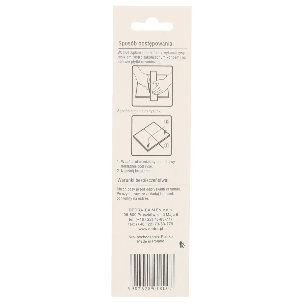 Škrabka na obkladačky DEDRA DED018 uľahčuje presné rezanie a tvarovanie keramických obkladačiek počas renovačných a dokončovacích prác.