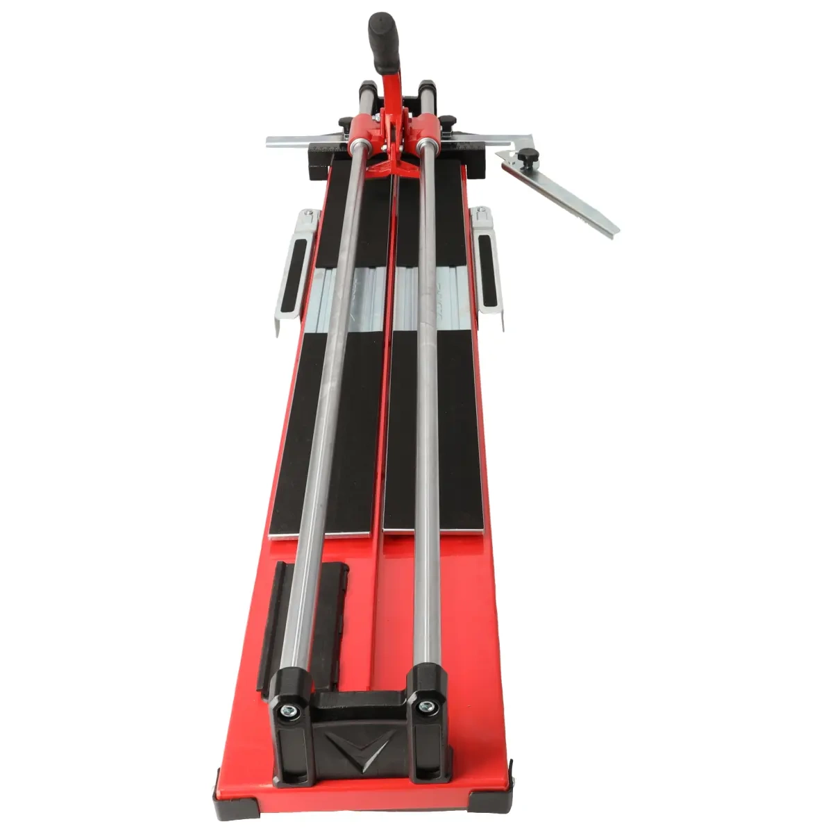 Z gumo prevlečen ročaj zagotavlja udobno podajanje rezalnega kolesa. Oblazinjene delovne površine so obložene z gumijastim mikrogumom. Stroj ima dva zložljiva stranska nosilca, ki se uporabljata pri rezanju ploščic velikega formata. Kotne reze olajša tudi dodaten kovinski kotni nosilec.
