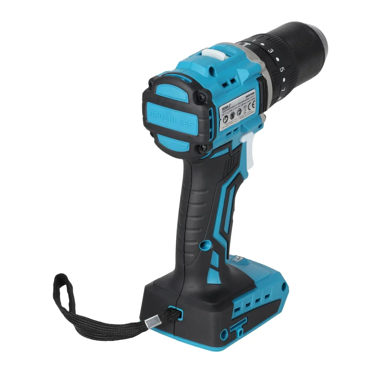 Enoplastno samozatezno vpenjalno držalo (13 mm) zagotavlja enostavno namestitev vseh vrst nastavkov, npr. svedrov, svedrov. Uporabljeni brezkrtačni motor je še izboljšal zmogljivost in udobje, dodatni ročaj pa omogoča lažje vodenje vrtalnika tudi skozi trdovratne materiale.