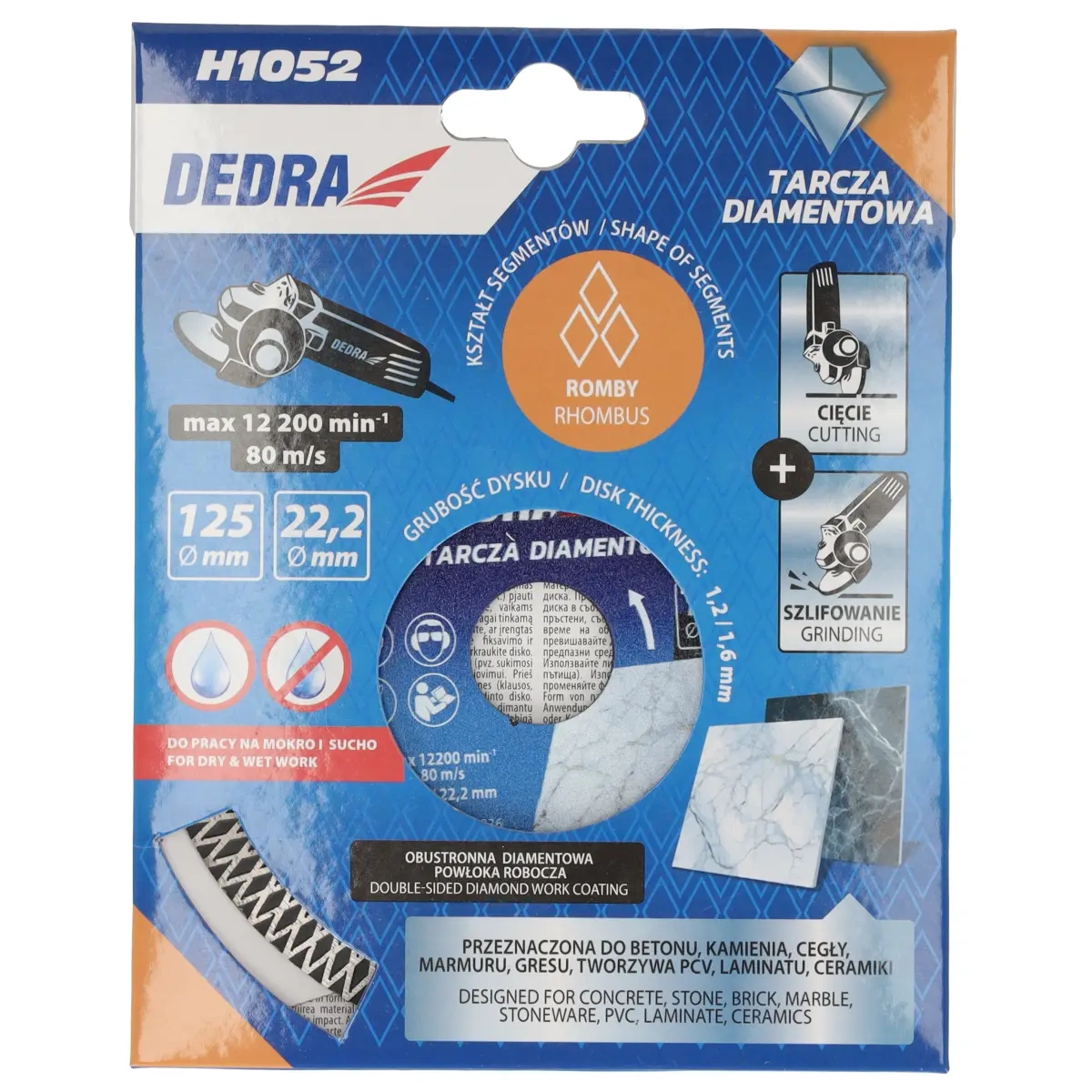 Diamantna rezalna plošča s segmentom v obliki romba, DEDRA H1052 rezalna plošča, mokro rezanje, suho rezanje, premer 125 mm