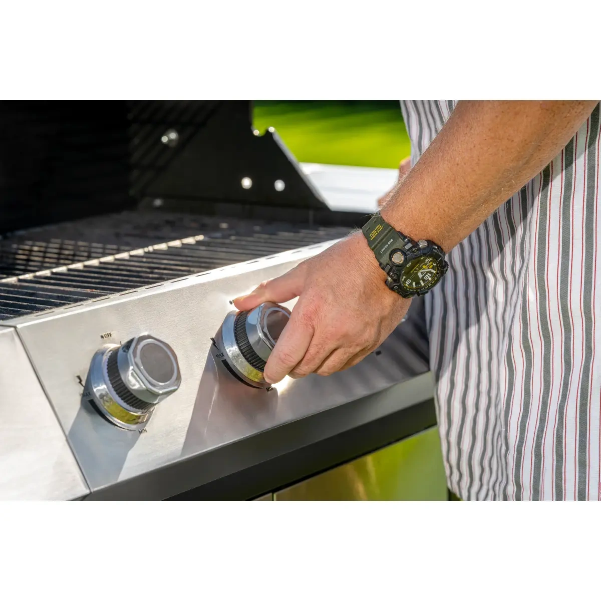 Piezoelektrično vžigalo, vgrajeno v gumb, omogoča hitro in enostavno zagon žara brez dodatnih pripomočkov. Termometer, vgrajen v pokrov, omogoča nadzor notranje temperature brez pogostega odpiranja pokrova, s čimer se zmanjša izguba toplote.