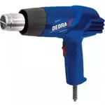 W ofercie naszego sklepu znajdą Państwo opalarkę DEDRA DED7970 o mocy 2000W– to podstawowy model wyposażony w 2-stopniową regulację mocy grzewczej. I tak dla pierwszego biegu, pierwszej nastawy moc wynosi 1000W, a temperatura jaką uzyskamy na końcówce dyszy będzie wynosiła 350°C. Dla tej nastawy, przepływ powietrza wyniesie 300L/min. Będzie to przydatne przy delikatniejszych pracach z materiałami jakie narażone są na uszkodzenie pod wpływ wysokiej temperatury. Drugi bieg to moc 2000W czyli pełna moc urządzenia. Dla tego biegu przepływ powietrza będzie wynosił 500L/min a temperatura na końcówce dyszy wyniesie 550°C.